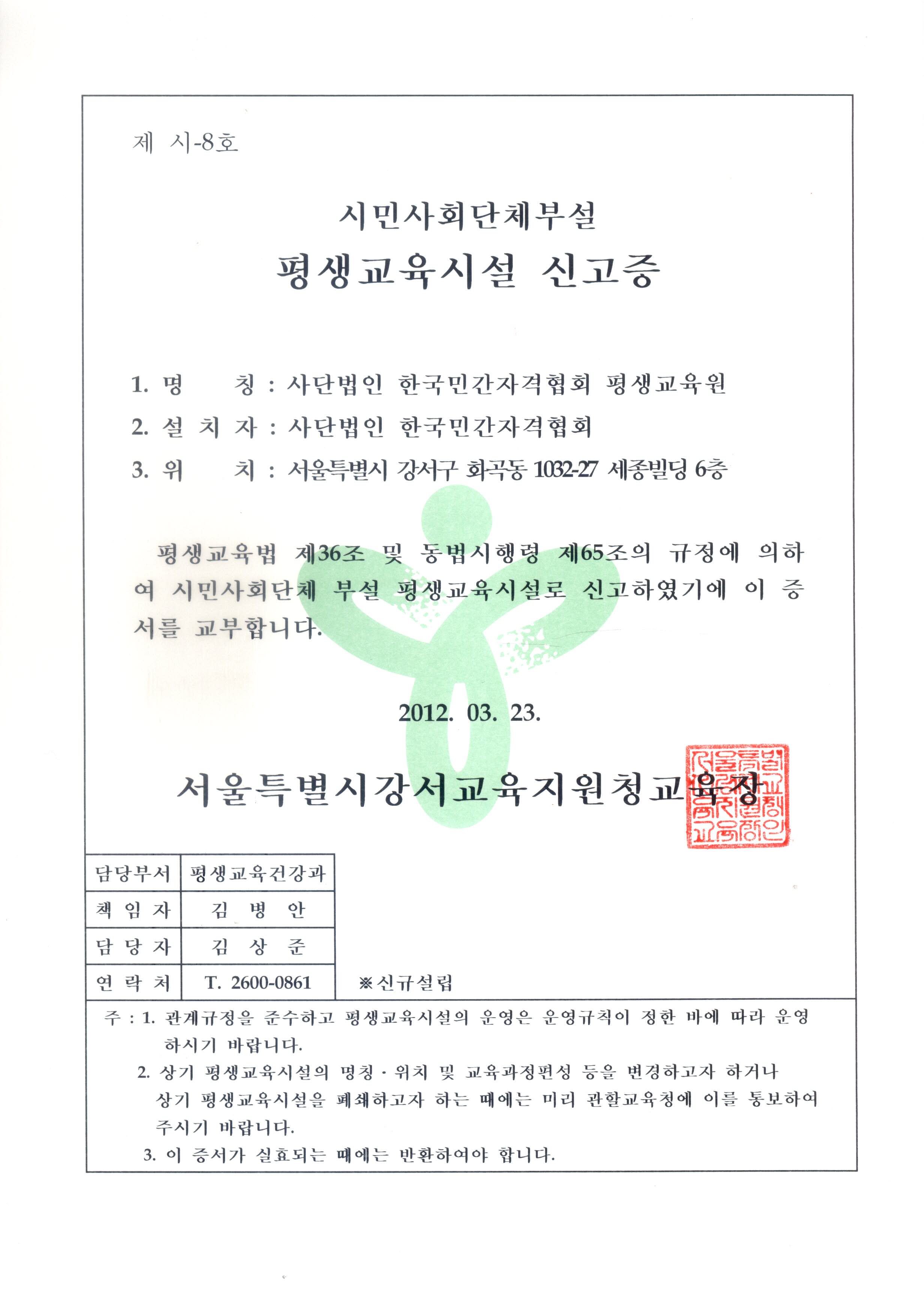 (»ç)Çѱ¹¹Î°£ÀÚ°ÝÇùȸ Æò»ý±³À°¿ø ½Å°íÁõ